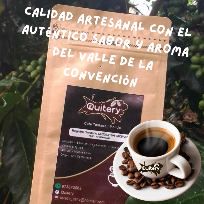 Disfruta del auténtico sabor y aroma del Café Quitery, elaborado con granos de la más alta calidad, cultivados en las fértiles tierras del Valle de La Convención, Cusco. Con un tostado artesanal que resalta sus notas aromáticas y su sabor intenso, este café es perfecto para los amantes de una experiencia auténtica y natural.